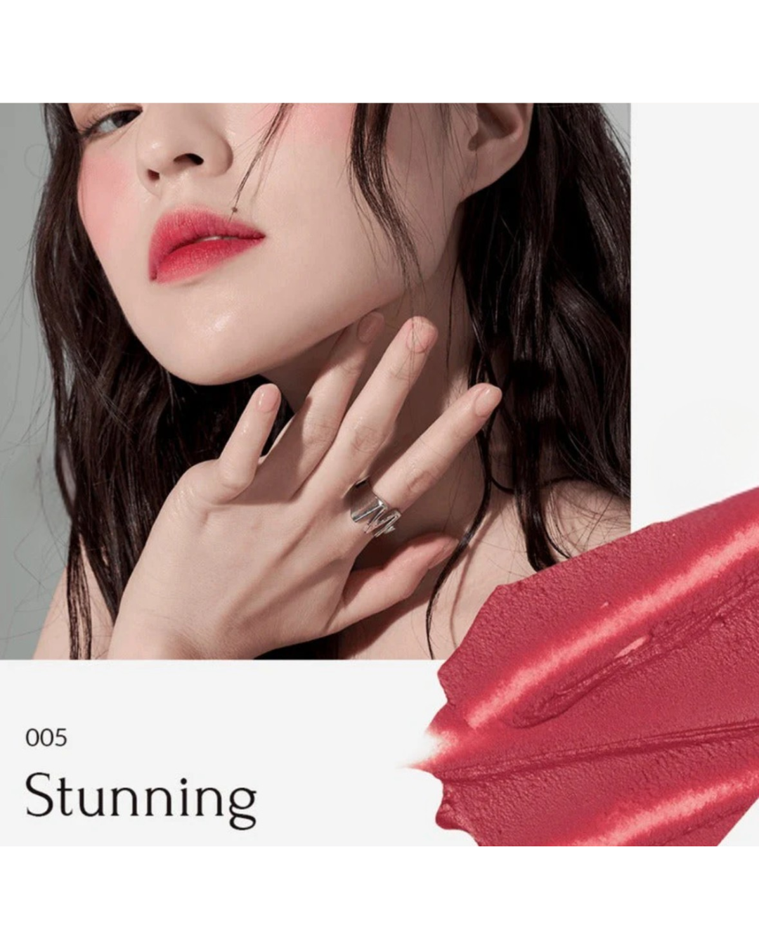 Semi-Mat: Jep një pamje të butë dhe të fokusuar (soft-focus), duke i bërë buzët të duken të lëmuara dhe të plota. Pigmenti nuk lëviz dhe nuk shpërndahet (smudge-proof).
